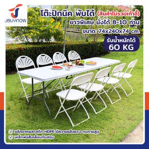 โต๊ะพับได้ HDPE โต๊ะปิกนิก โต๊ะเอนกประสงค์ ทนแดด ทนฝน 74x240x74 ซม. สีขาว Z240A